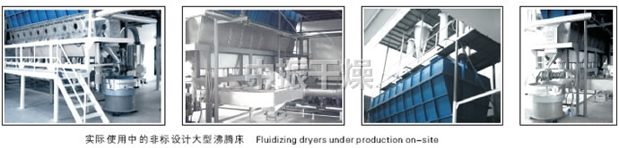 洁净的热风经阀板分配进入床体内,从加料器进入的湿物料被热风形成沸腾状态。由于热风与物料广泛接触,增强了传热传质的过程,因此在较短时间内就可干燥。如用连续型,物料从床体的一头进入,经过几十秒至几分钟沸腾干燥,自动从床体另一头流出。本设备一般进行负压操作。