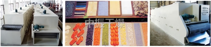 物料由加料器均匀地铺在网带上,网带一般采用12-60目不锈钢丝网,由传动装置拖动在干燥机内移动。干燥机由若干单元组成,每一单元热风独立循环,部分尾气由专门排湿风机排出,废气由调节阀控制,热气由下往上或由上往下穿过铺满物料的网带完成热量与质量传递的进程,带走物料水份。网带缓慢移动,运行速度可根据物料温度自由调节,干燥后的成品连续落入收料器中。上下循环单元根据用户需要可灵活配备,单元数量亦可根据需要选取。