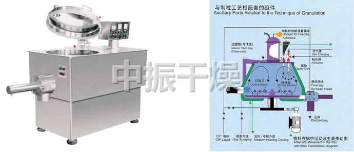 ◎在同一封闭容器内完成,干混-湿混-制粒,工艺缩短。
